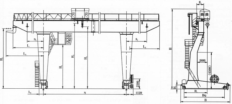 外形形狀似L形,俗稱偏掛龍門吊