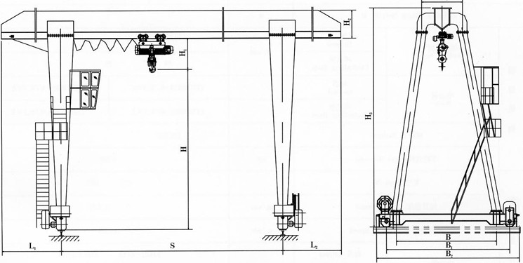MH型電動葫蘆門式起重機與CD、MD等型號的電動葫蘆配套使用,是一種有軌運行的中小型起重機,其適用起重量3~16噸,適用跨度為12~30米,工作環(huán)境-20攝氏度~+40攝氏度內(nèi)。