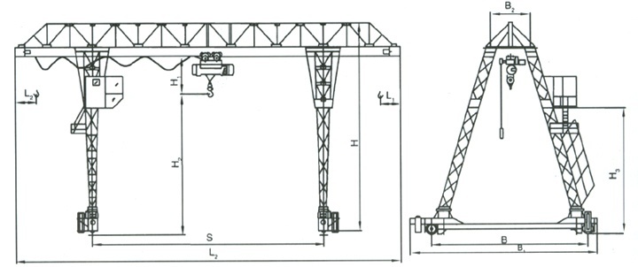 描   述: MH型3~10噸電動(dòng)葫蘆門式起重機(jī)(全花架式),主梁上懸掛電動(dòng)葫蘆。